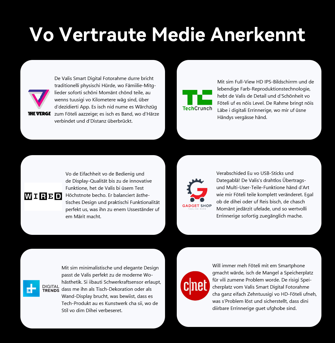 Das Ergebnis war der Valis Smart Photo Frame – mit leistungsstarkem Wi-Fi und einem einfachen, benutzerfreundlichen Design macht er das Teilen mühelos und zeigt jeden Moment in lebendigem HD. Die Mission von Valis ist klar: Digitale Unordnung in die Freude des Teilens zu verwandeln, damit Sie sich auf die Erinnerungen und nicht auf die Technik konzentrieren können.